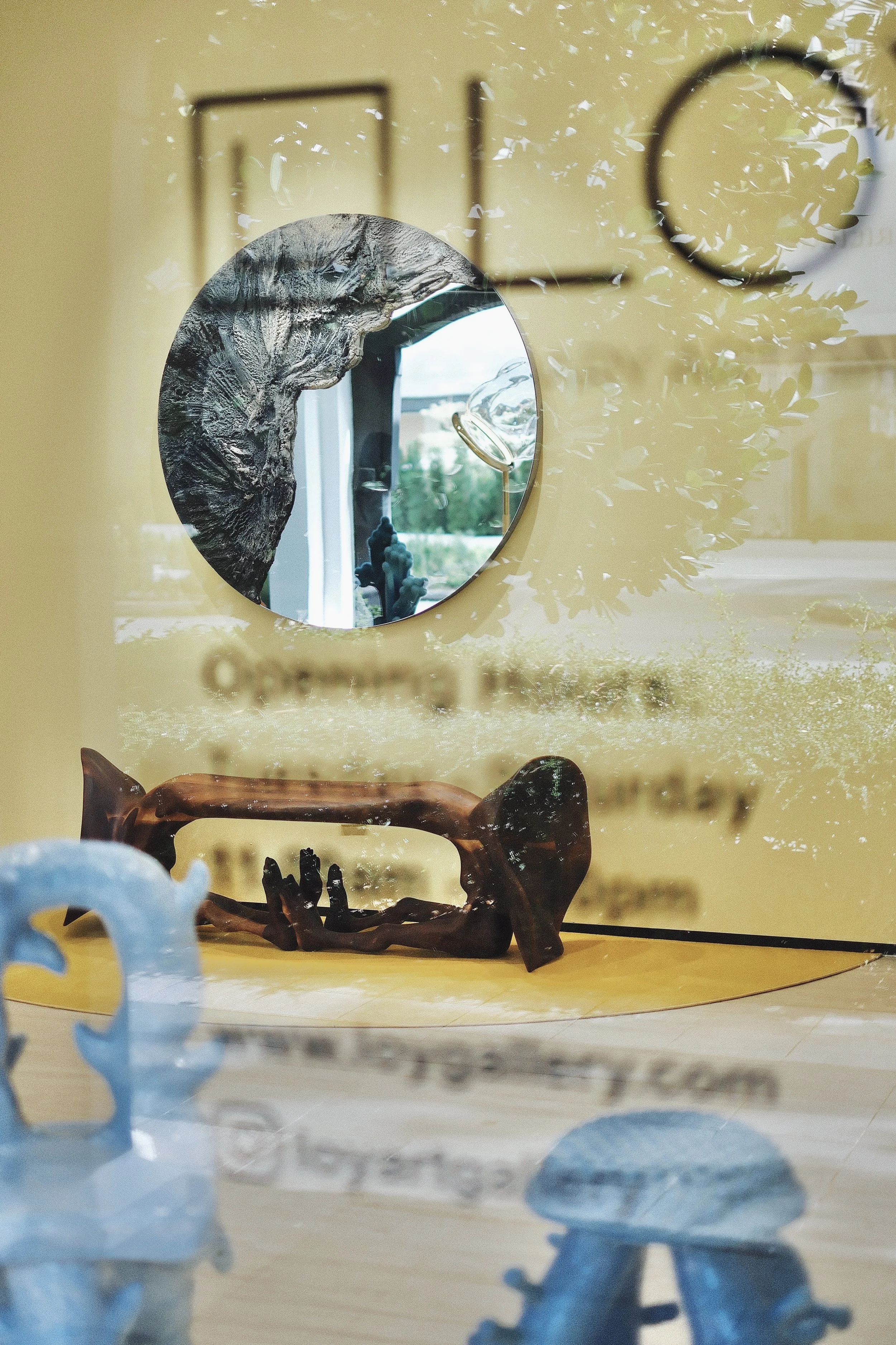 The passing of time is contemplated through material. An ear embalmed in copper, a mural of ornate clay doubles as ancient remains. Inside these four walls, human anatomy elevates to an even greater enigma. Organic, man-made, and “other” shrouded beyond distinction. The only consistent certainty is a human’s need to walk, to discover.
